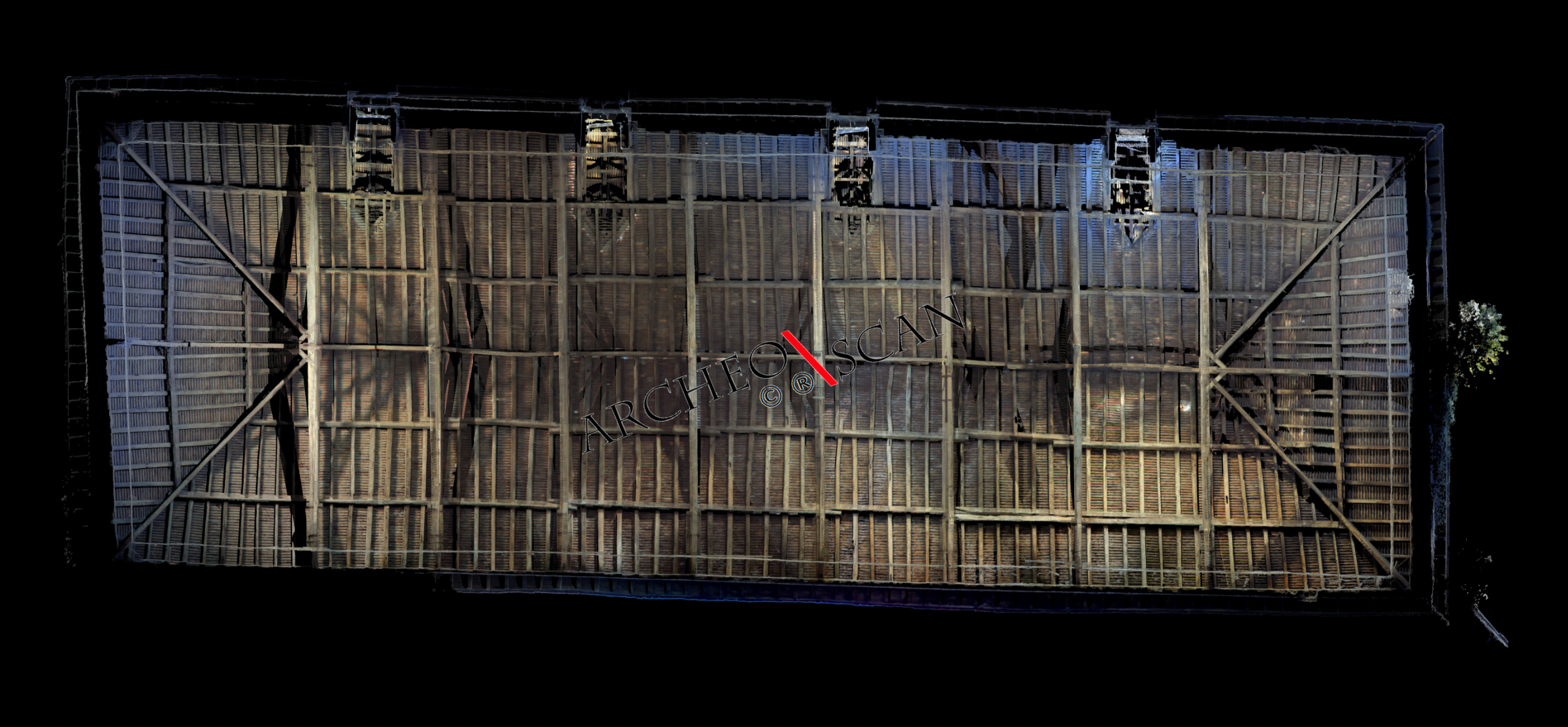 Orthophotographie de la charpente -Lasergrammétrie vue de dessous.
